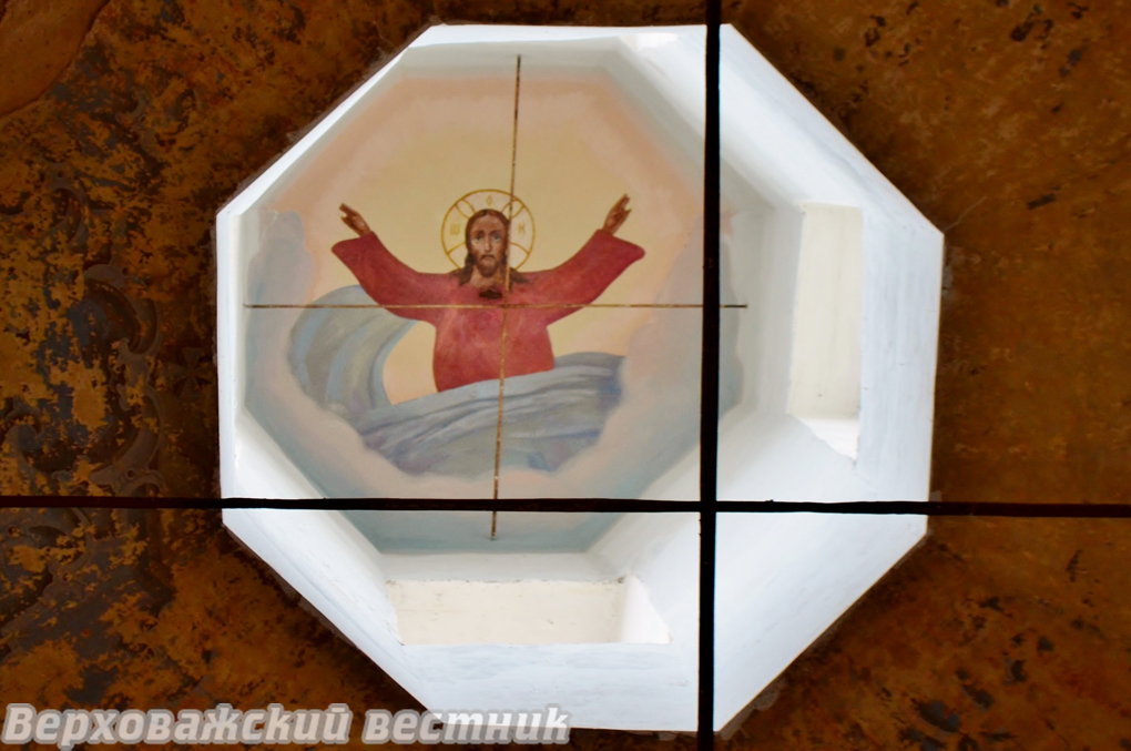 Роспись с образом Христа Спасителя в световом барабане боровинского храма, которую она восстановила