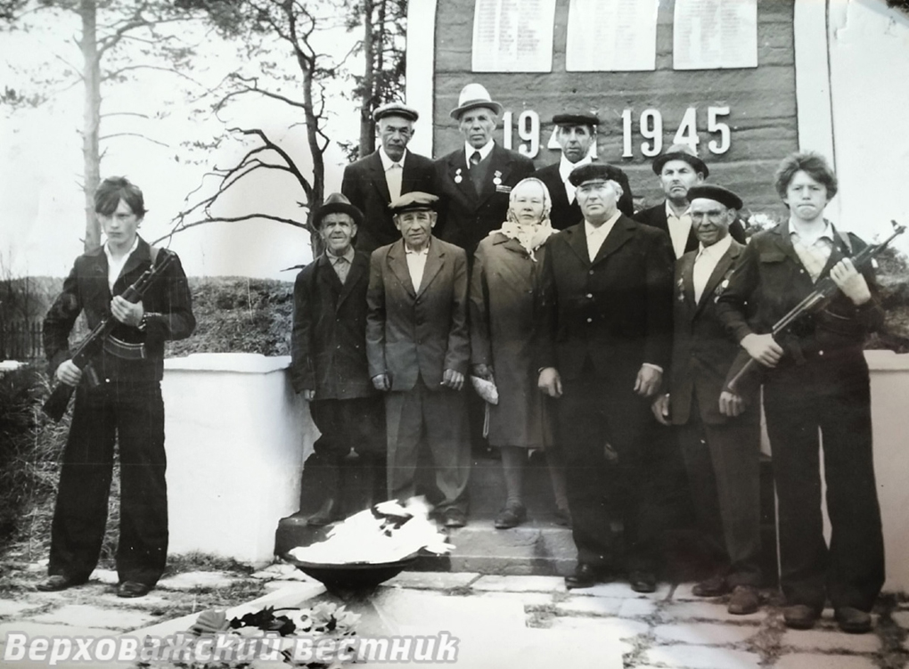 Памятная фотография ветеранов Великой Отечественной войны д. Сметанино, 1984 год. Иван Геннадьевич стоит во втором ряду вторым справа