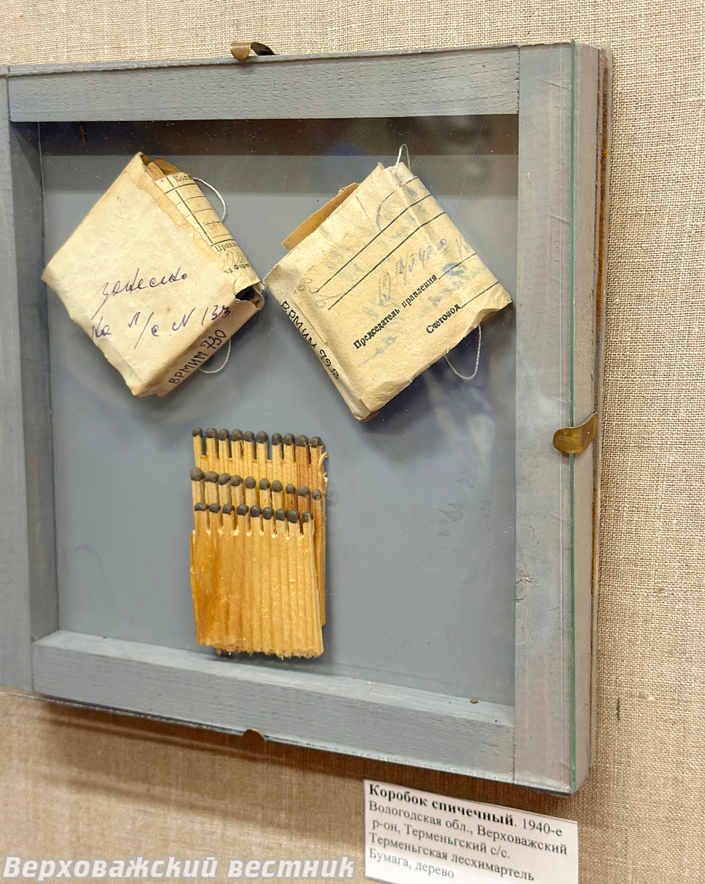 «У нас в Верховажье была спичечная фабрика купца Юренского, и в 1940-е годы во время Великой Отечественной войны верховажане наладили производство спичек. В нашей экспозиции есть спички, произведенные терменгской лесхимартелью, которые упаковывались потом в бумагу. Бумага использовалась вторично, зачастую это были какие-то акты или бухгалтерские документы», – рассказала директор музея.