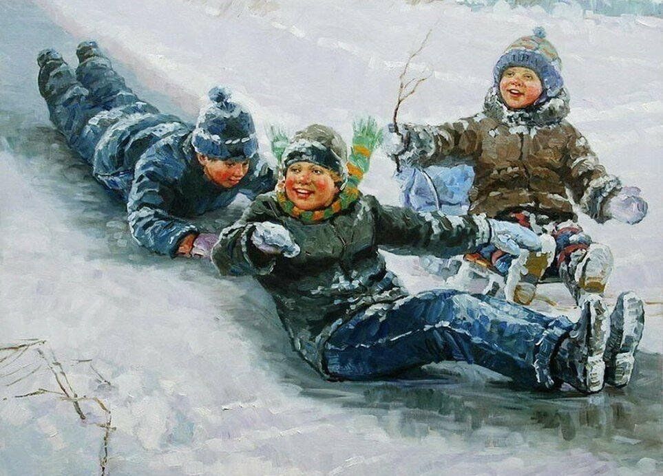 Дети приходили с сырыми ногами и красными носами, но довольные (художник Е. Балакшин)