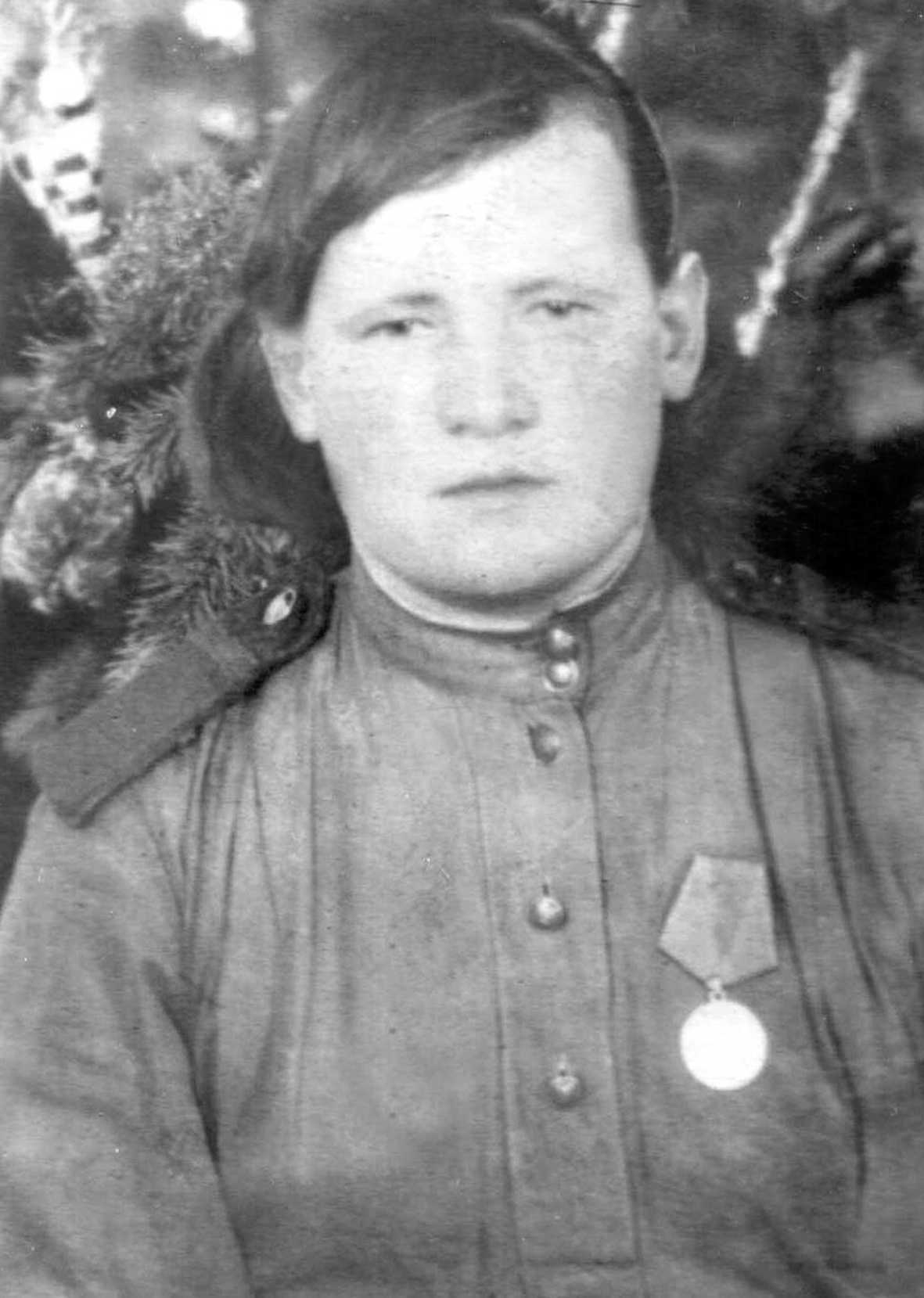 Военнообязанная. Лейтенант медицинской службы. Во время войны обучала военному делу призывников, которые потом уходили на фронт. Также обслуживала гражданское население, рабочих на лесозаготовках.
